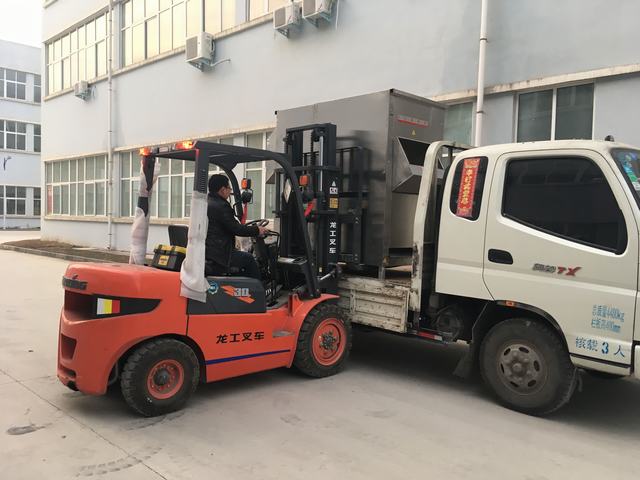 風(fēng)雨無(wú)阻,發(fā)往山東棗莊的自動(dòng)脫毛機(jī)裝車實(shí)拍圖片